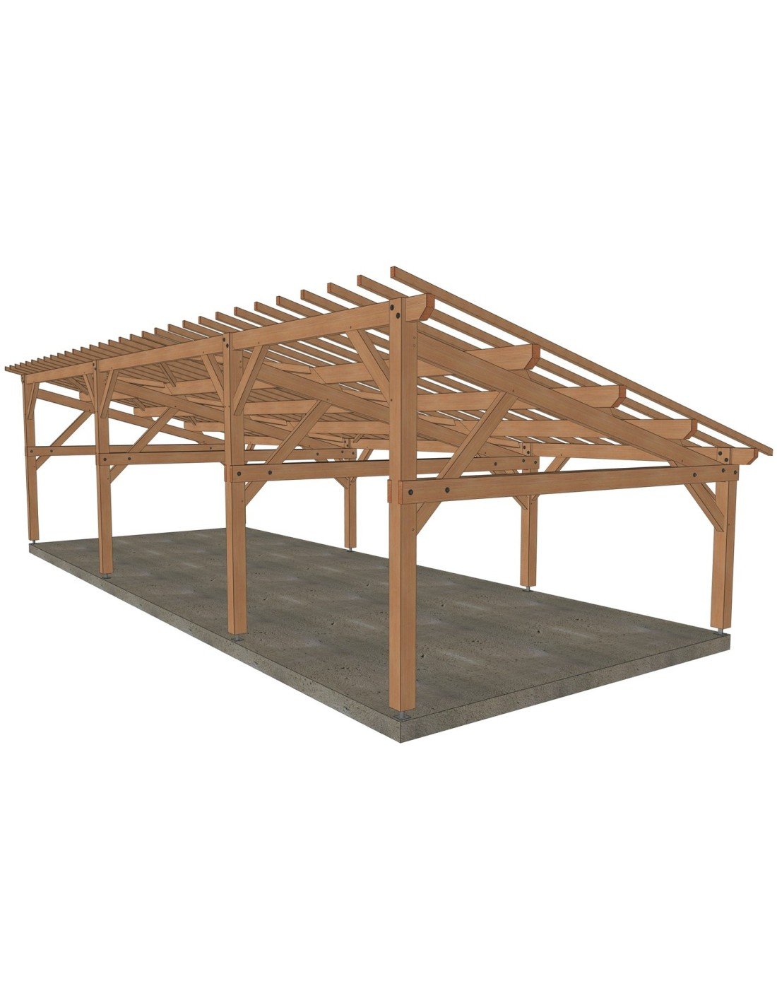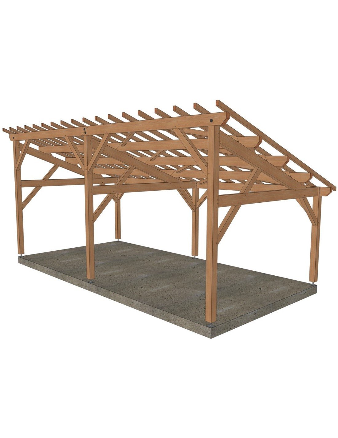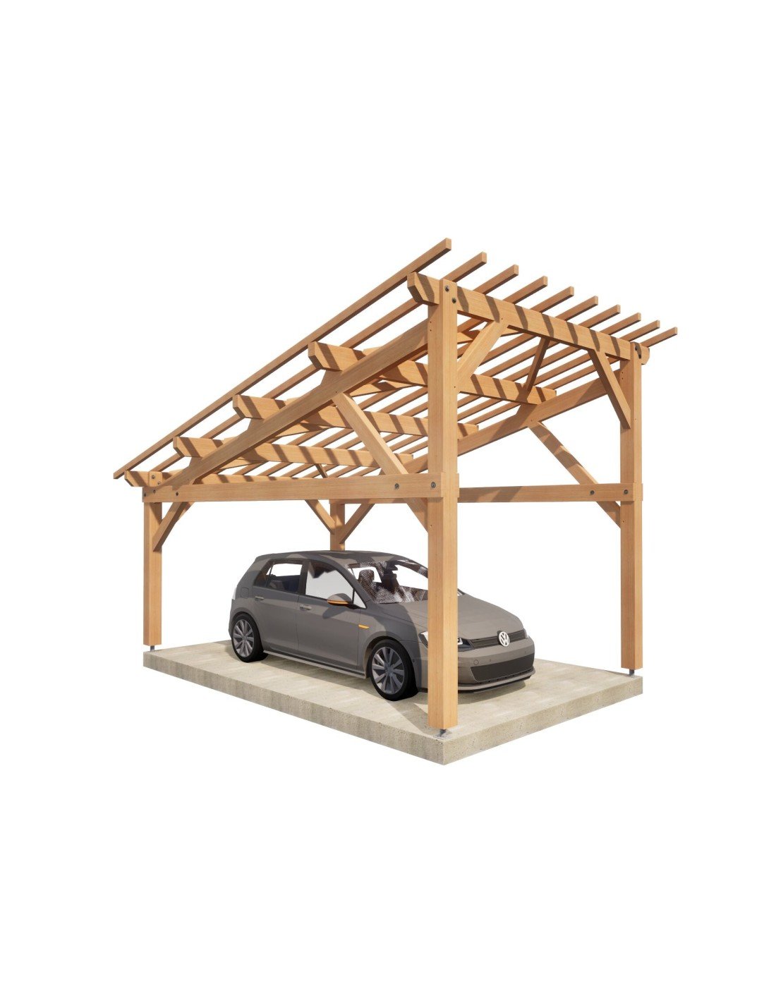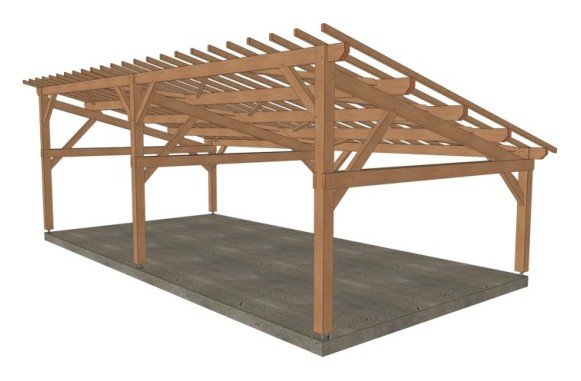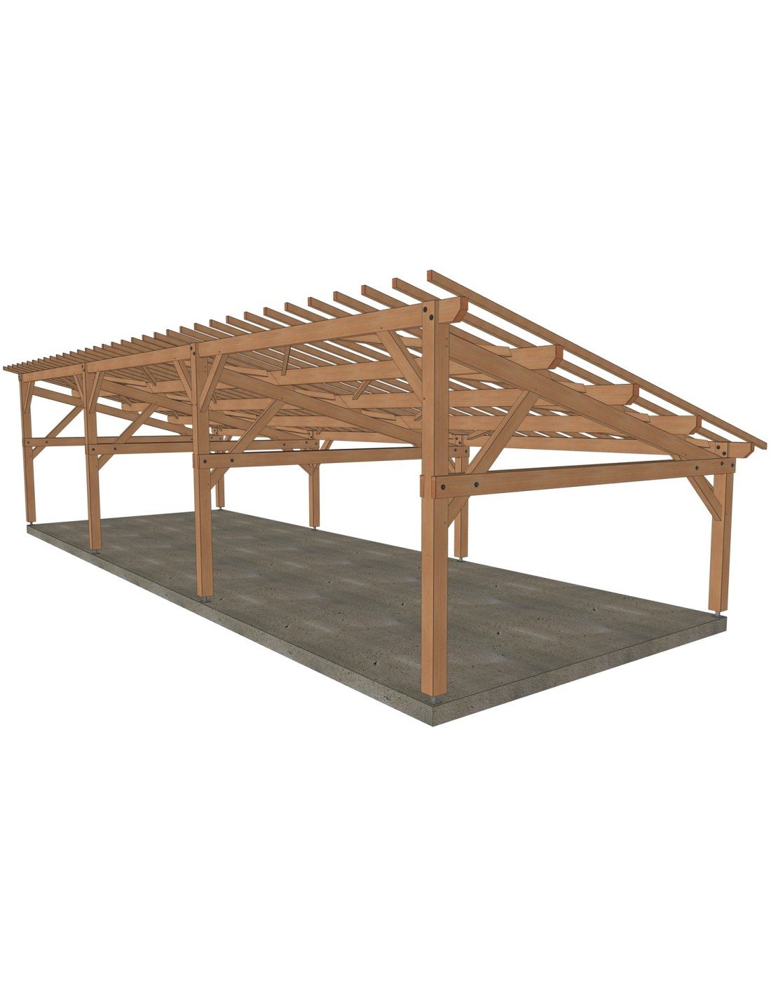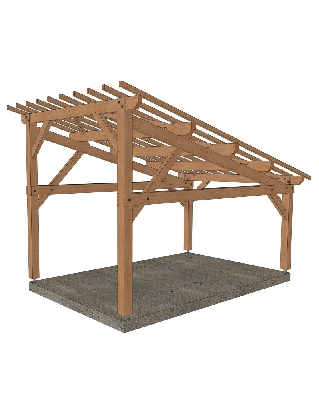 . Prête à être assemblée, toutes les coupes, tenons, mortaises et perçages sont réalisés. Sa mise en œuvre requiert une expérience et du matériel de levage adapté