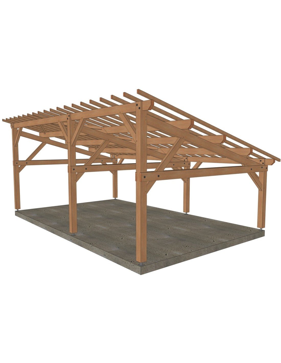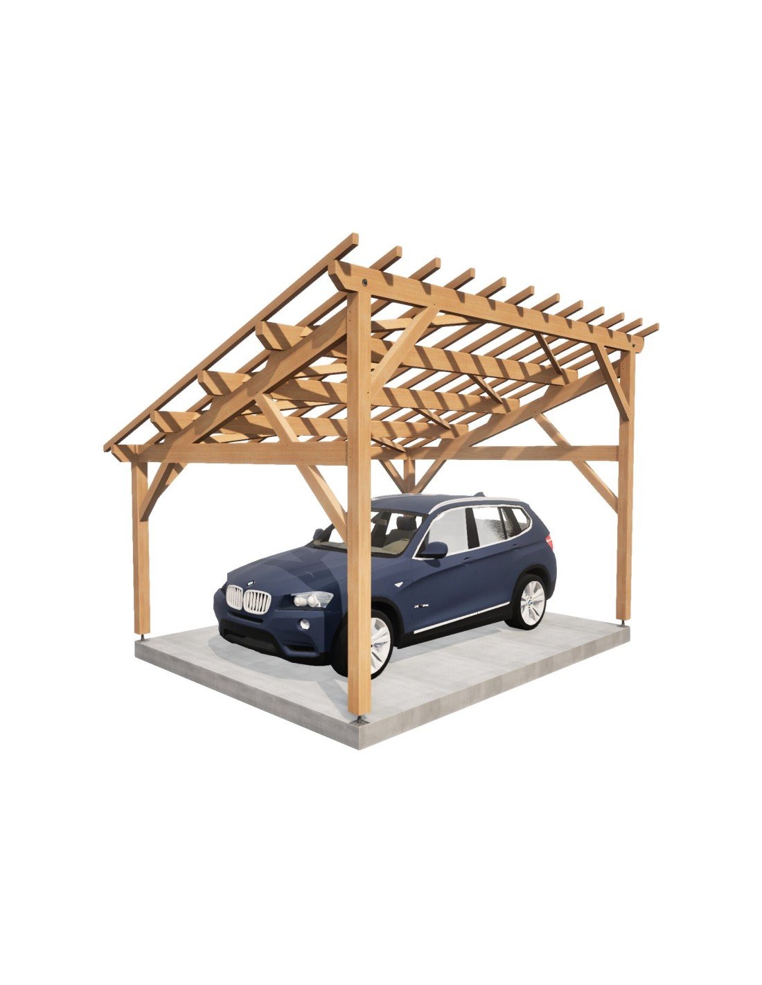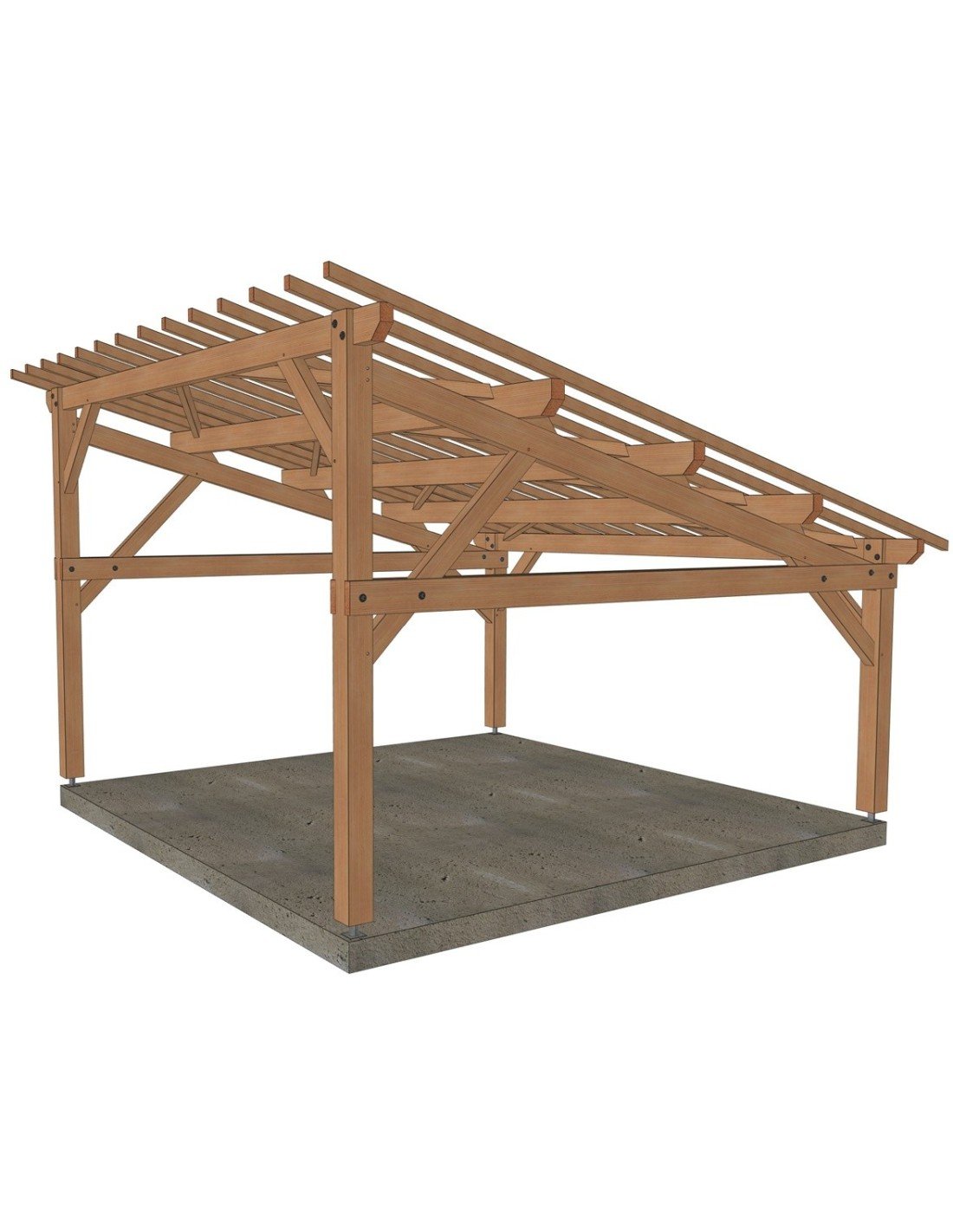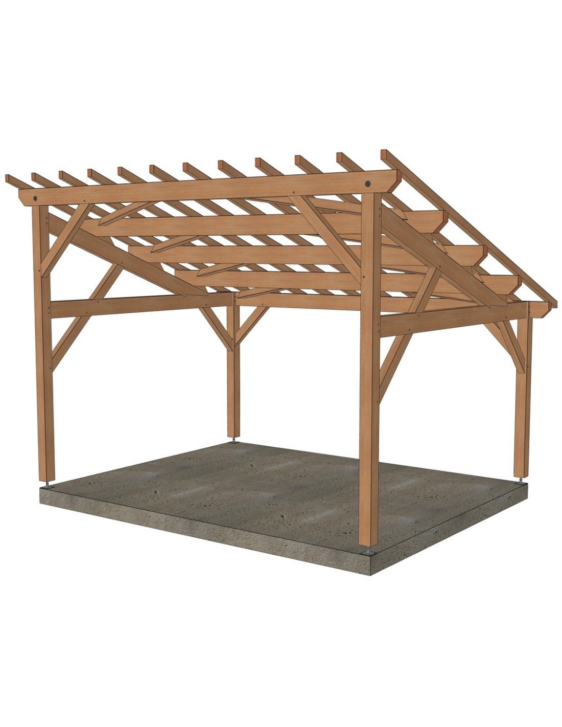 . Prête à être assemblée, toutes les coupes, tenons, mortaises et perçages sont réalisés. Sa mise en œuvre requiert une expérience et du matériel de levage adapté