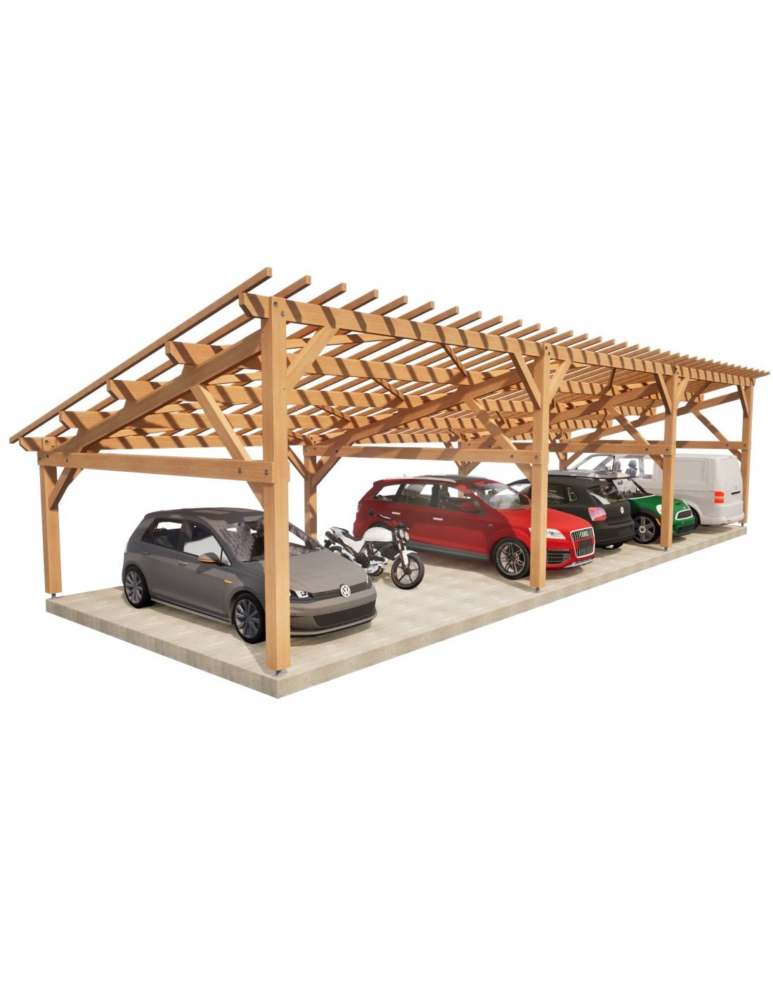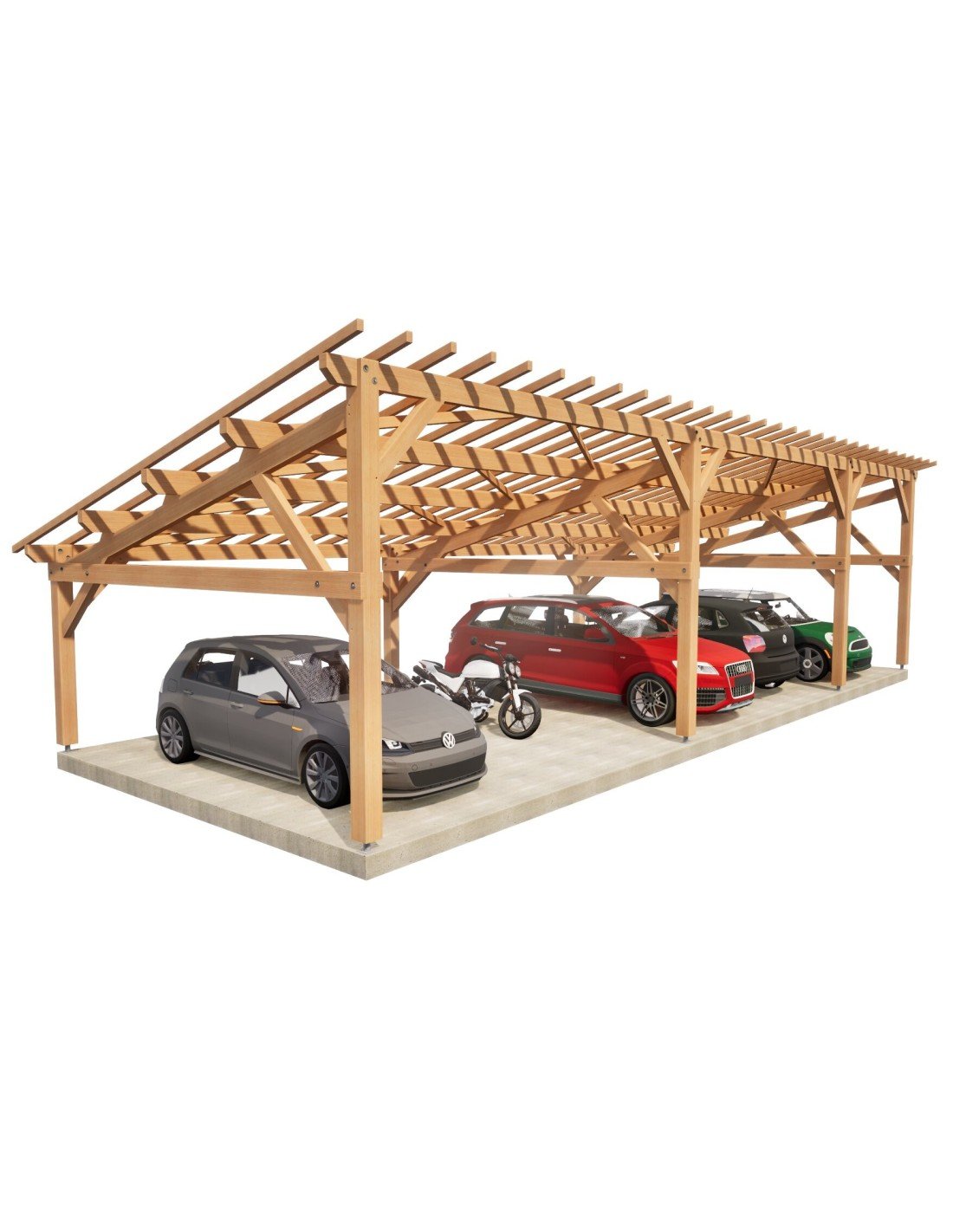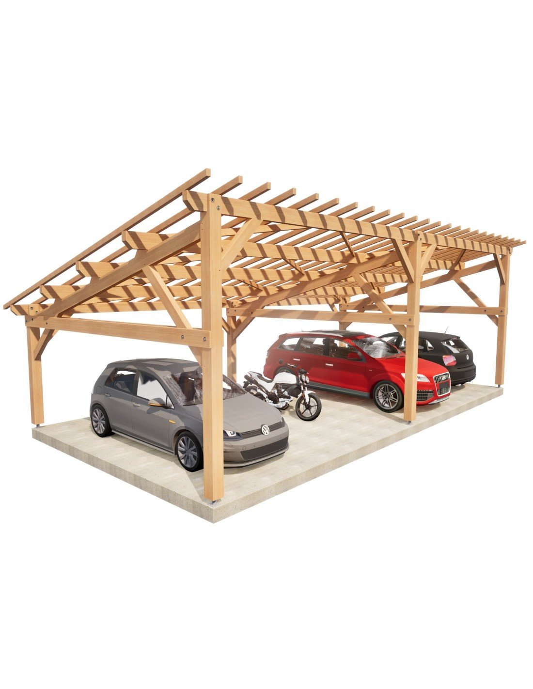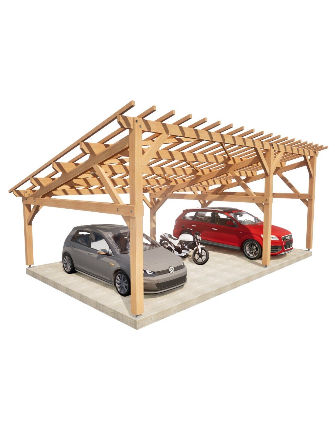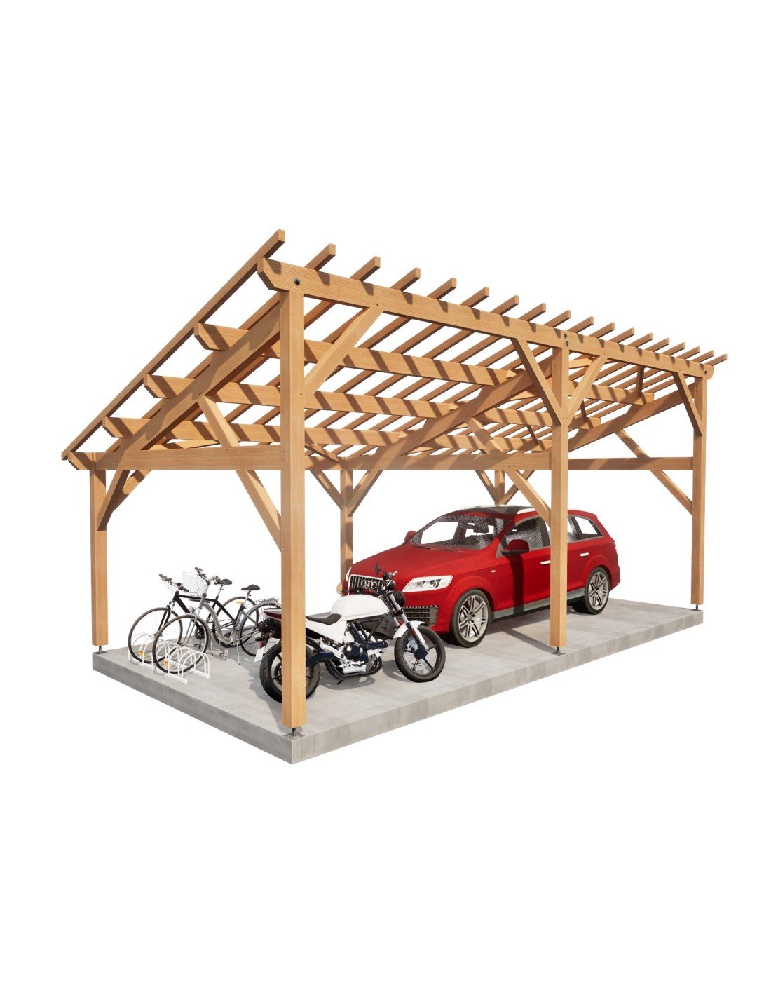. Prête à être assemblée, toutes les coupes, tenons, mortaises et perçages sont réalisés. Sa mise en œuvre requiert une expérience et du matériel de levage adapté