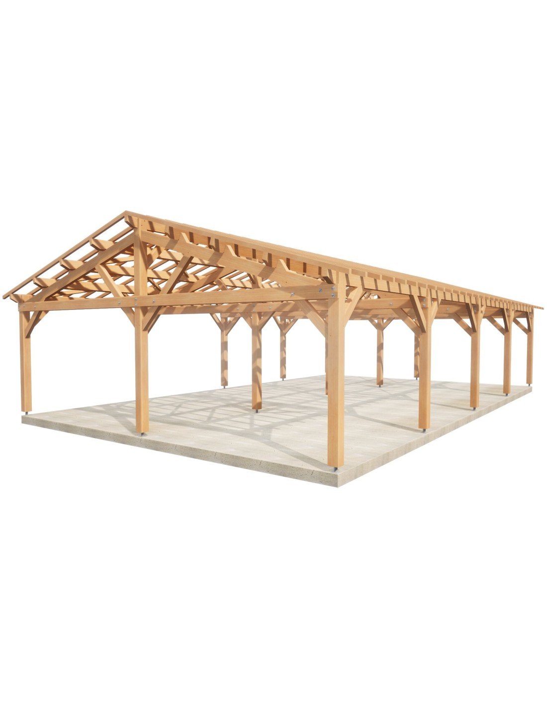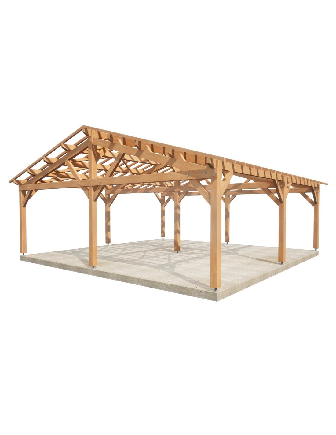 . Prête à être assemblée, toutes les coupes, tenons, mortaises et perçages sont réalisés. Sa mise en œuvre requiert une expérience et du matériel de levage adapté
